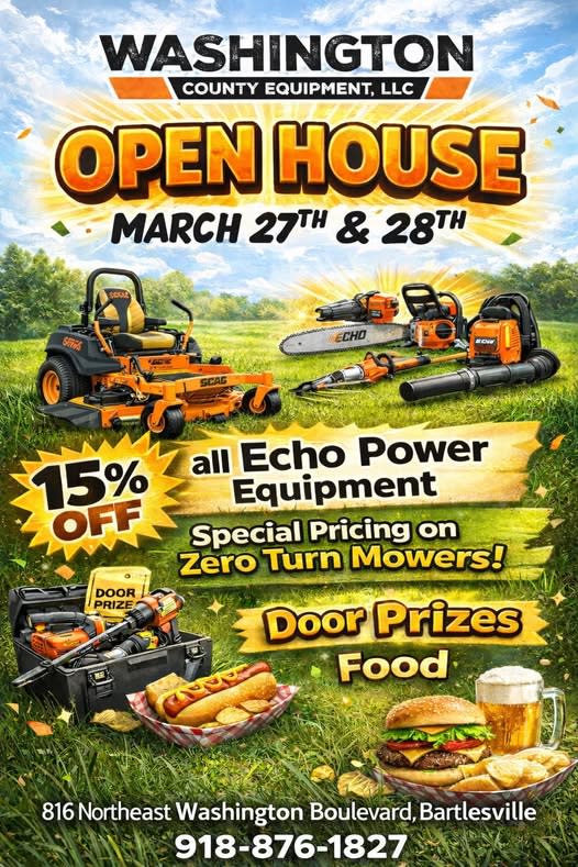 Washington County Equipment's Open House has been set! All Echo powered equipment will be 15% Off!